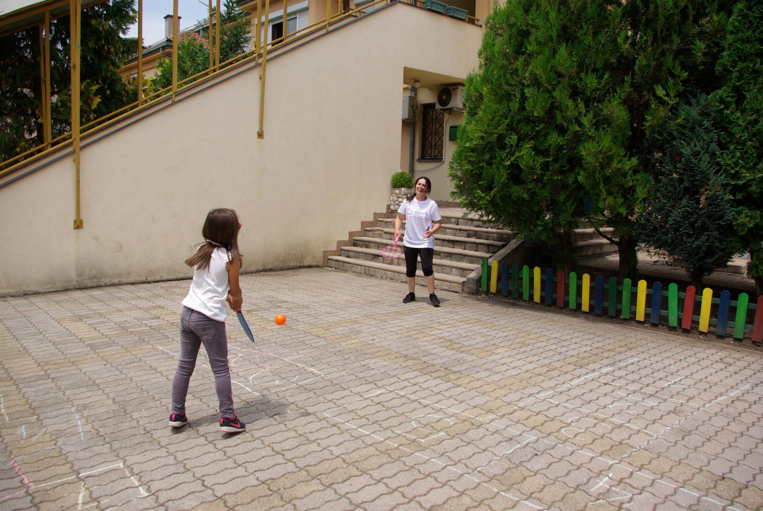 Но тоа не беше сè. Откако фудбалот заврши, а мафините беа ставени да се печат сите заедно се собравме во централниот двор каде што слушавме акустична музика отпеана од срце и го започнавме натпреварот во „Не лути се човече“ со џиновка коцка. Децата беа пресреќни кога едно по едно се поместуваа по обележаното поле, и покрај тоа што еден тим победи, сите беа возбудени што беа дел од играта.