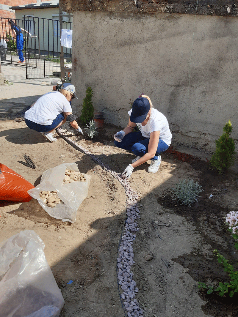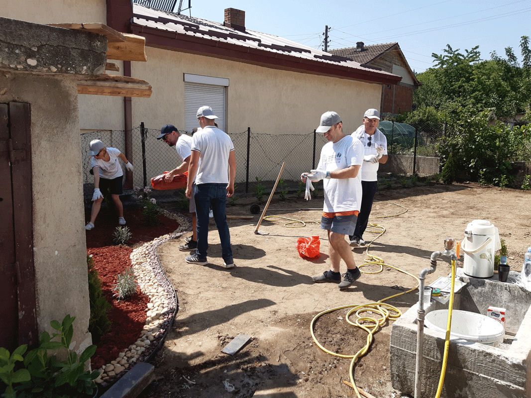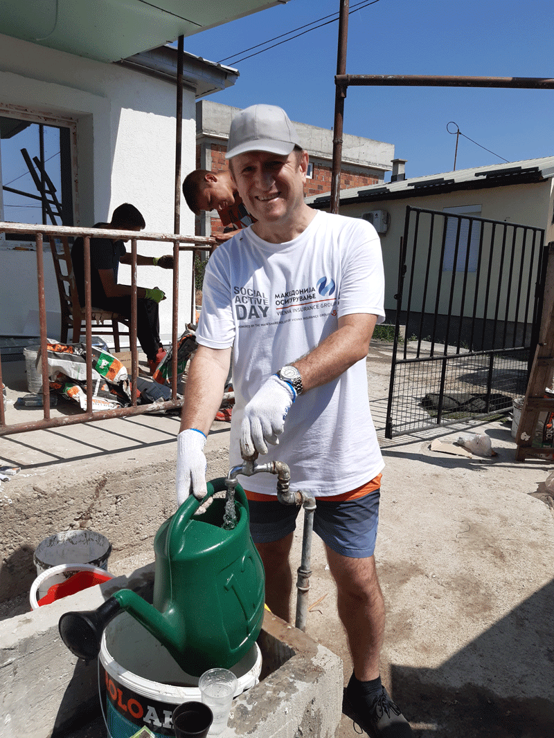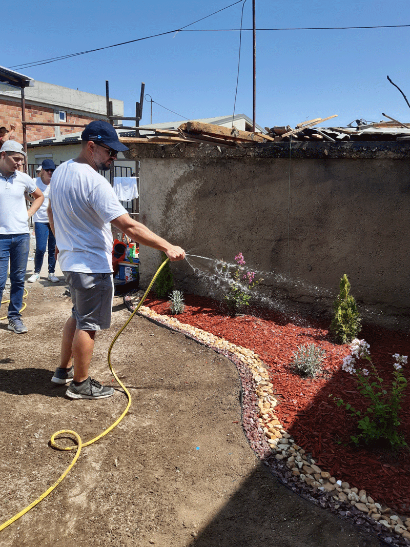Започнавме со финансиска поддршка, која ја надополнивме со годишни полиси за осигурување за домовите кои се дел од проектот, а најважно е што и дел од нашите вработени учествуваа во уредувањето на еден дом во населба Усје кој е дел од проектот. Тие се посветија на уредување на дворот на куќата на еден самохран татко кој живее со својот син тинејџер и го претворија во удобна градина во која тие може да уживаат.