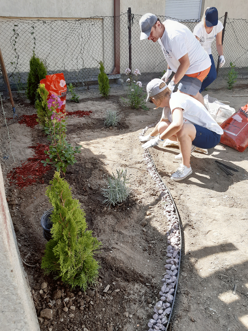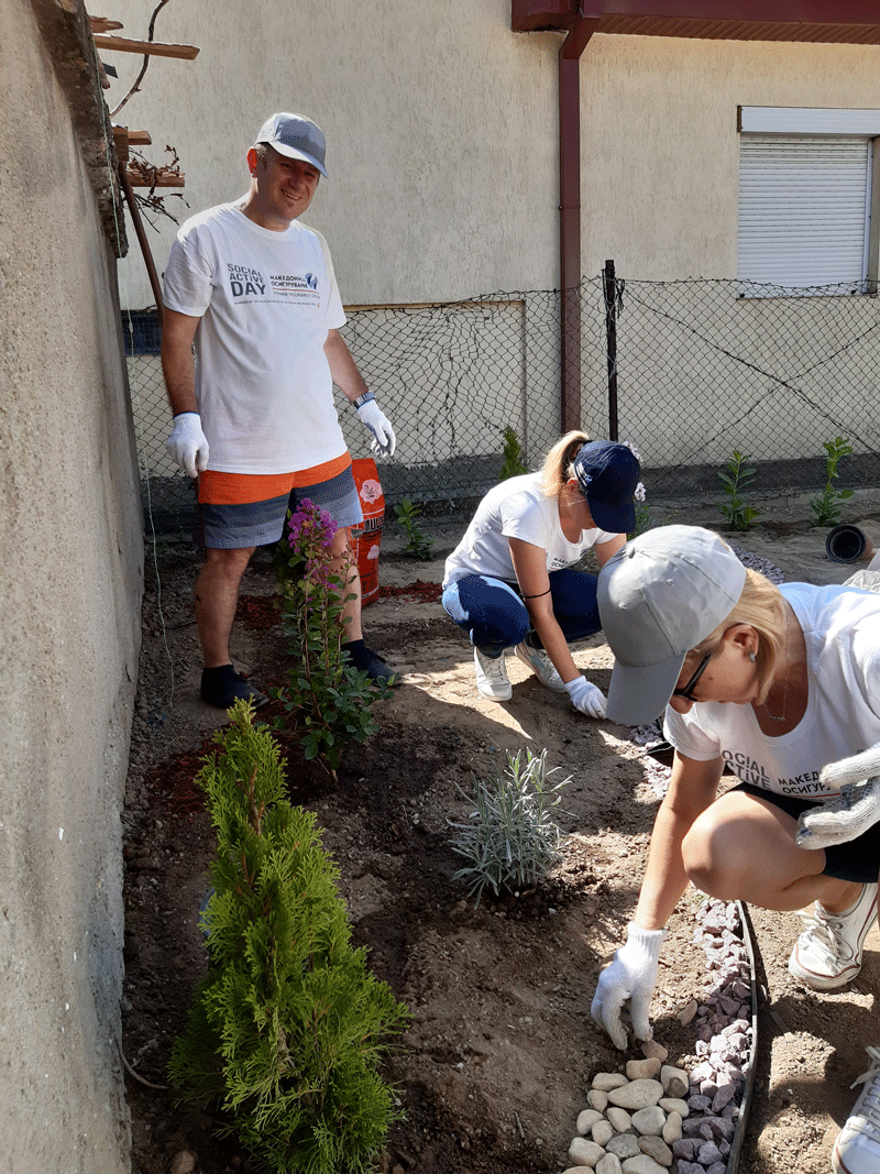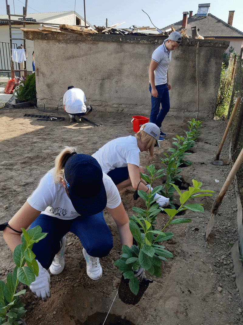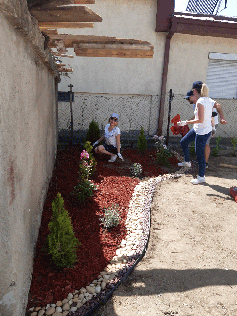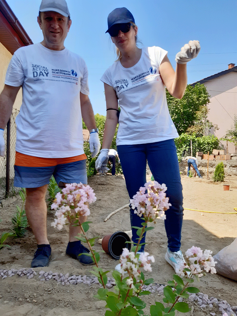 Започнавме со финансиска поддршка, која ја надополнивме со годишни полиси за осигурување за домовите кои се дел од проектот, а најважно е што и дел од нашите вработени учествуваа во уредувањето на еден дом во населба Усје кој е дел од проектот. Тие се посветија на уредување на дворот на куќата на еден самохран татко кој живее со својот син тинејџер и го претворија во удобна градина во која тие може да уживаат.