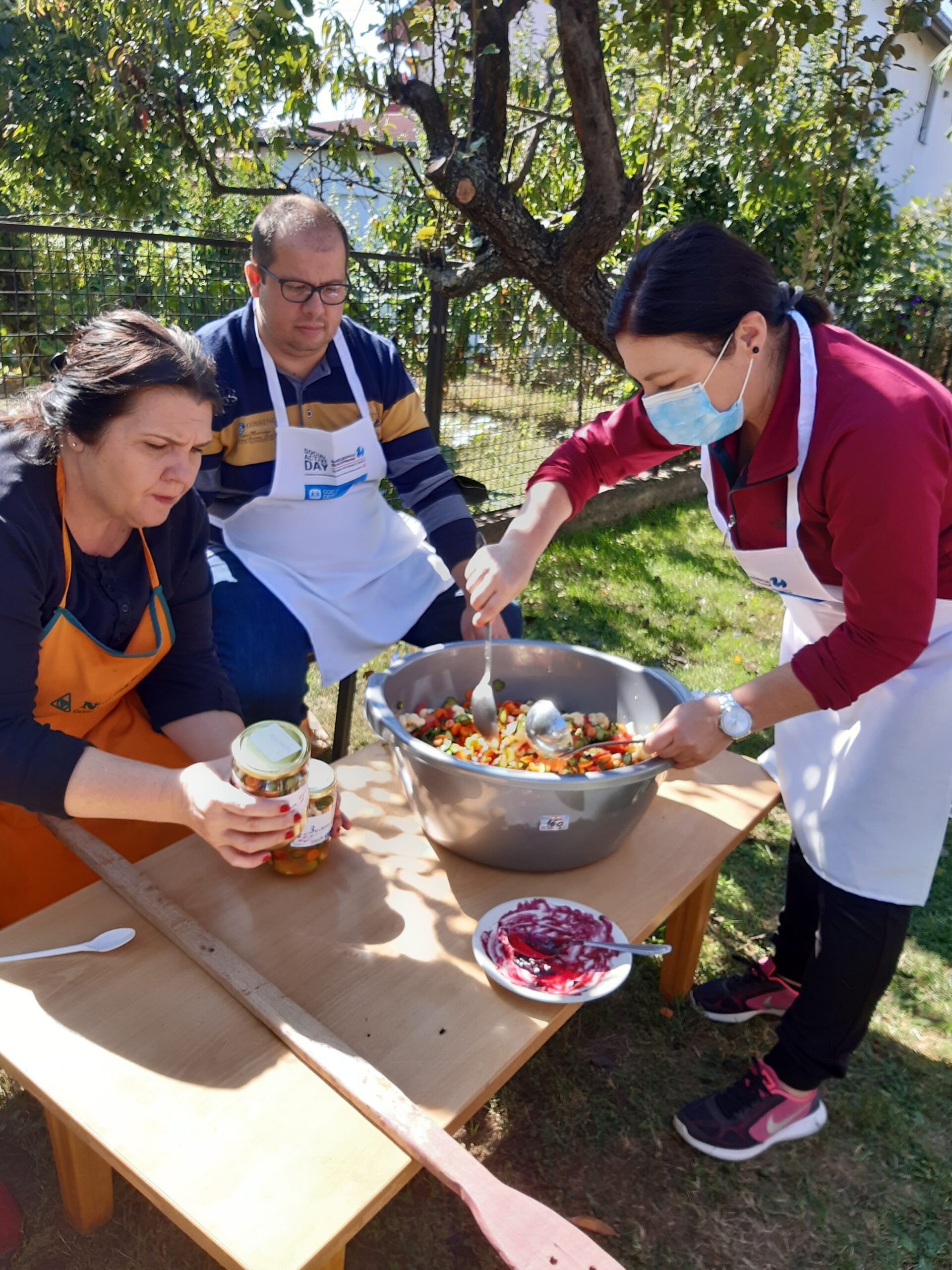 Разнобојните зеленчуци и модрите сливи весело се префрлаа низ вредните раце на нашите вработени и разбудуваа насмевки кај сите. Како и секогаш нашиот Social Active day вроди со плодови и овој пат тие беа најслатки. Младинците беа среќни и заоволни да учествуваат во ова необично дружење од кое понесоа спомени во вид на тегли полни со вкусна зимница и џем од сливи.