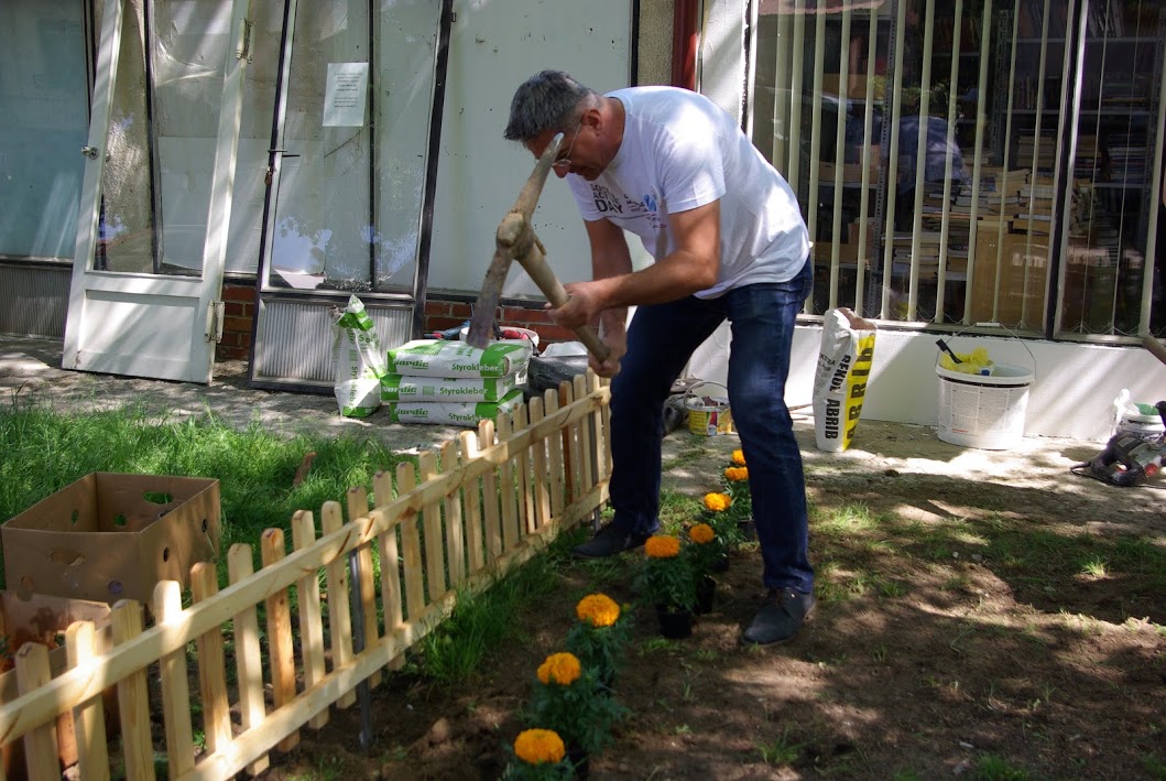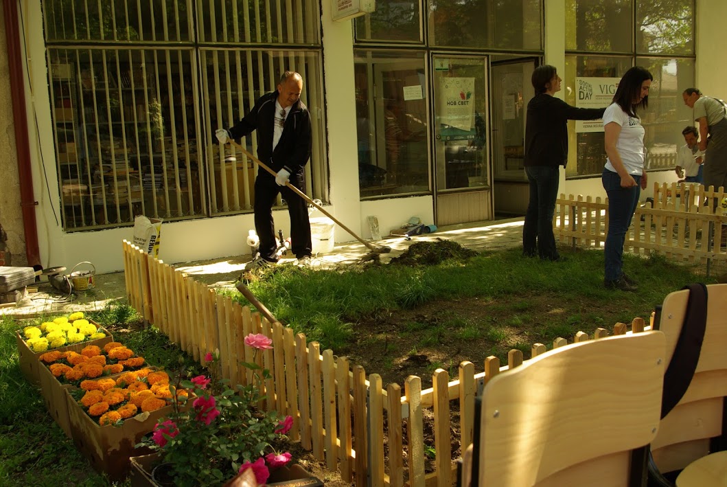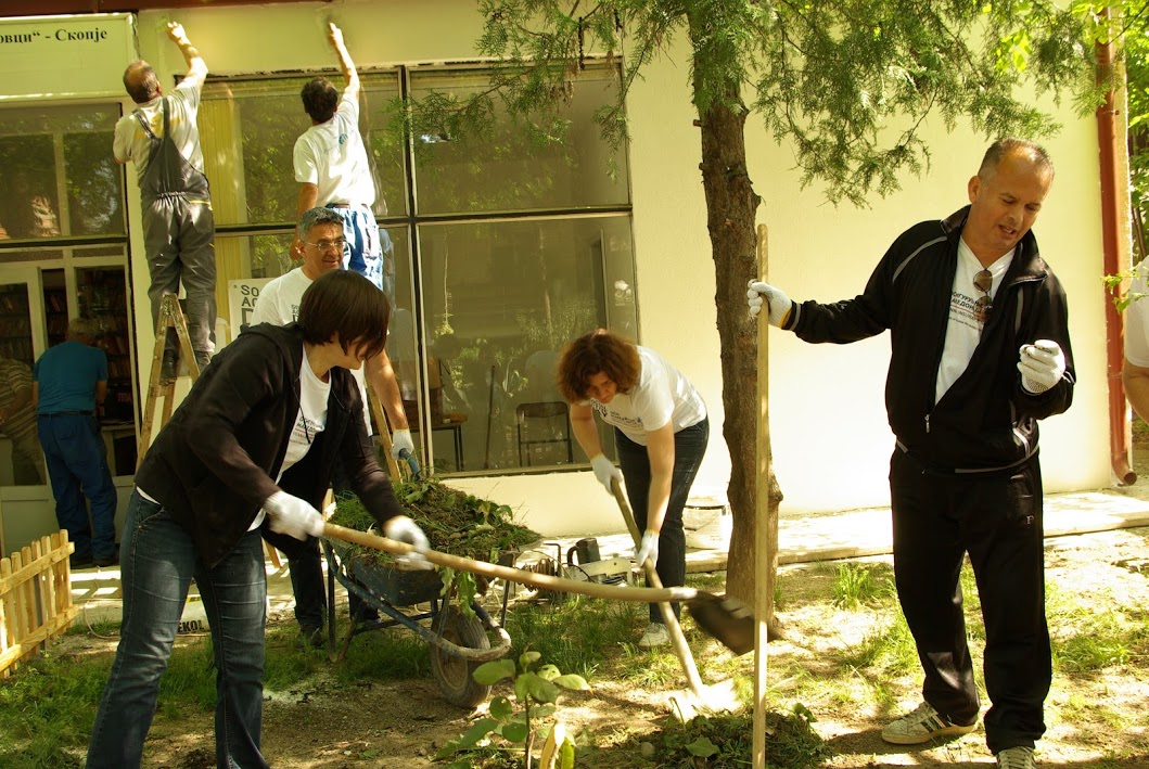Во градежните работи ни помогна Викторија градба, а нашите вработени го заокружија проектот. Целиот вчерашен работен ден го поминаа во работна акција во библиотеката во Лисиче, каде што собираа ѓубре, копаа дива трева и засадуваа цвеќиња. Ја фарбаа оградата, преместуваа тешки предмети и метеа. Расчистуваа во библиотеката редеа слики и книги и ги поставија клупите и столчињата.